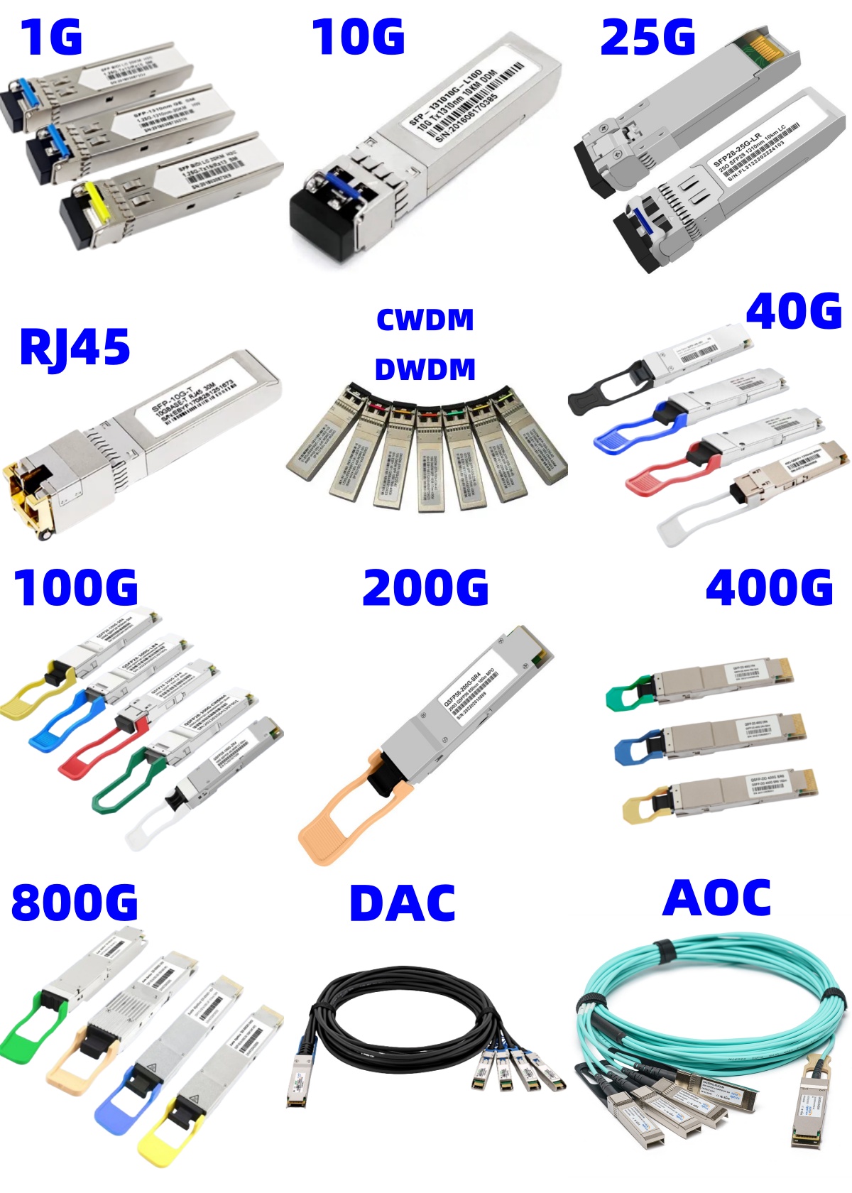 - Identical form factors (SFP, SFP+, QSFP, etc.)